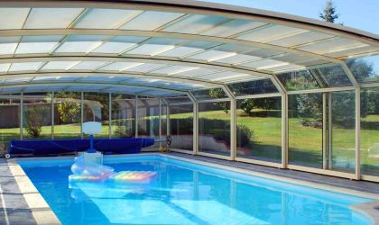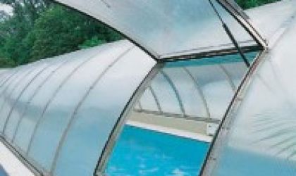 Vďaka vysokej priepustnosti svetla, mechanickej odolnosti a húževnatosti polykarbonátových dosiek je tento materiál perfektný pre zastrešenie vonkajších bazénov. Pre zastrešenie bazénov sa odporúča použitie komorových alebo plných polykarbonátových dosiek s obojstrannou ochranou proti UV žiareniu, ktorá zamedzí žltnutiu plexiskla pri prípadnom prieniku svetla do zastrešenej oblasti.