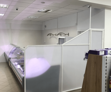 SpišMarket - Spišská Nová Ves predeľovacie steny a priečky z komorového Lexanu – farba opál, hrúbka 10 mm.