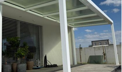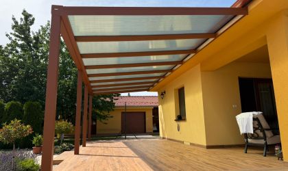 Systémová hliníková pergola s polykarbonátom LEXAN™ THERMOCLEAR™ PLUS 16mm hrúbka - farba opál.