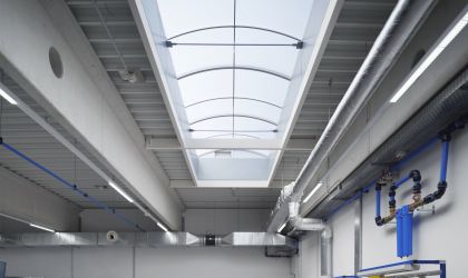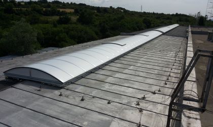 Ponúkame systémové riešenia pre výrobu pásových oblúkových svetlíkov, transparentných fasád a presvetľovacích pásov zo zámkových polykarbonátových panelov.