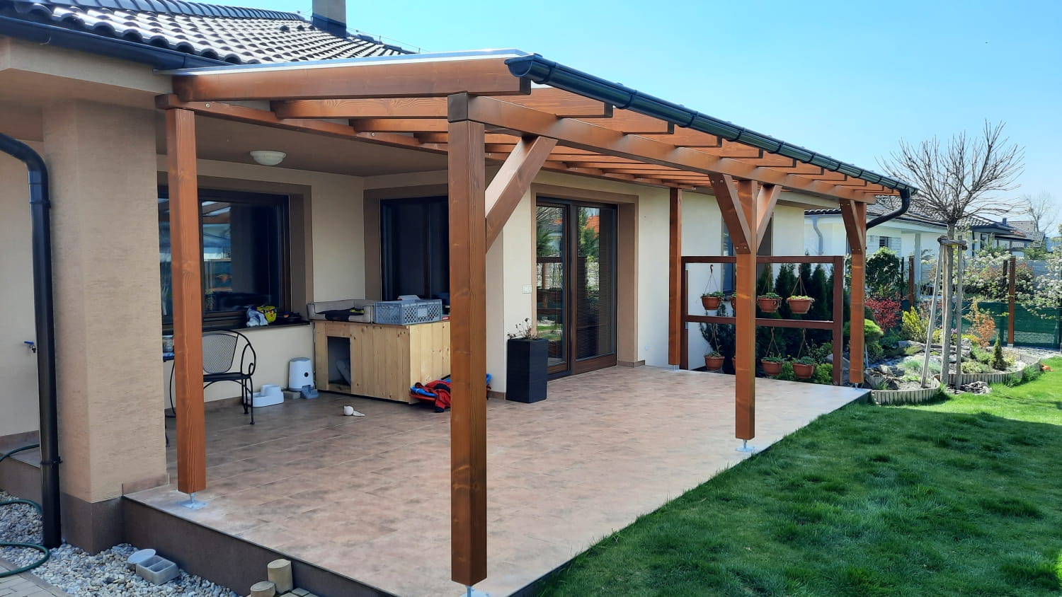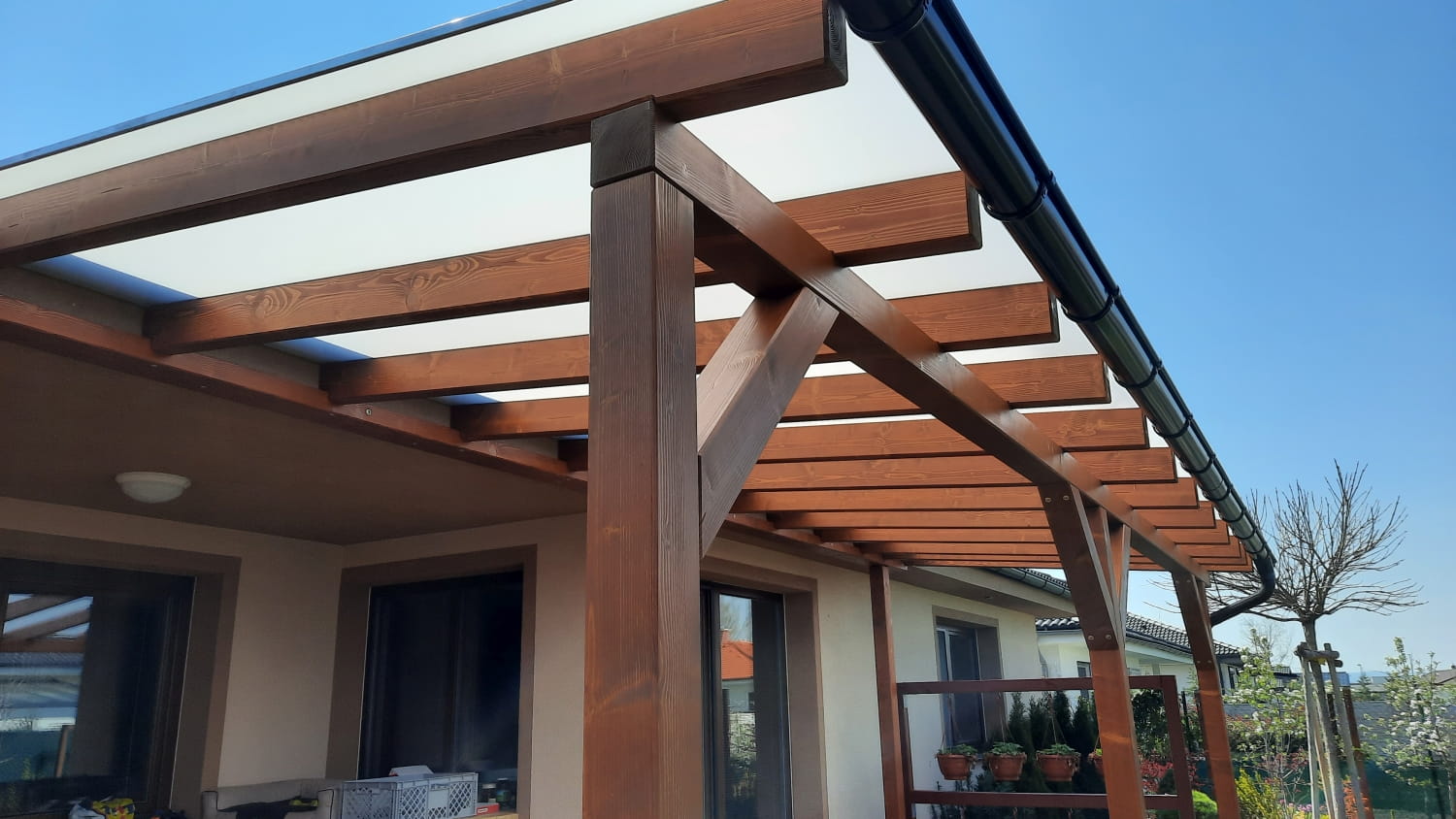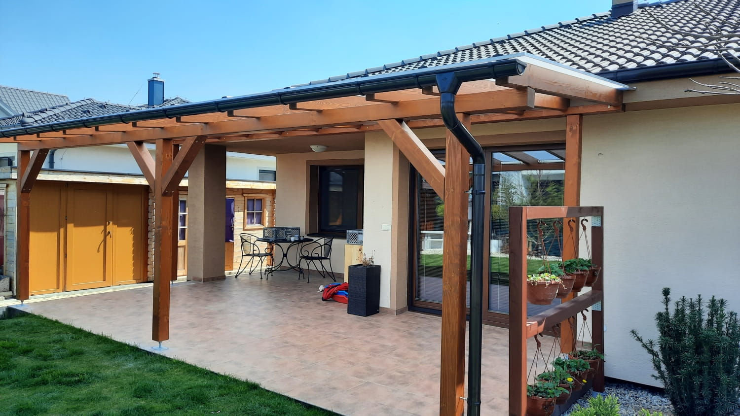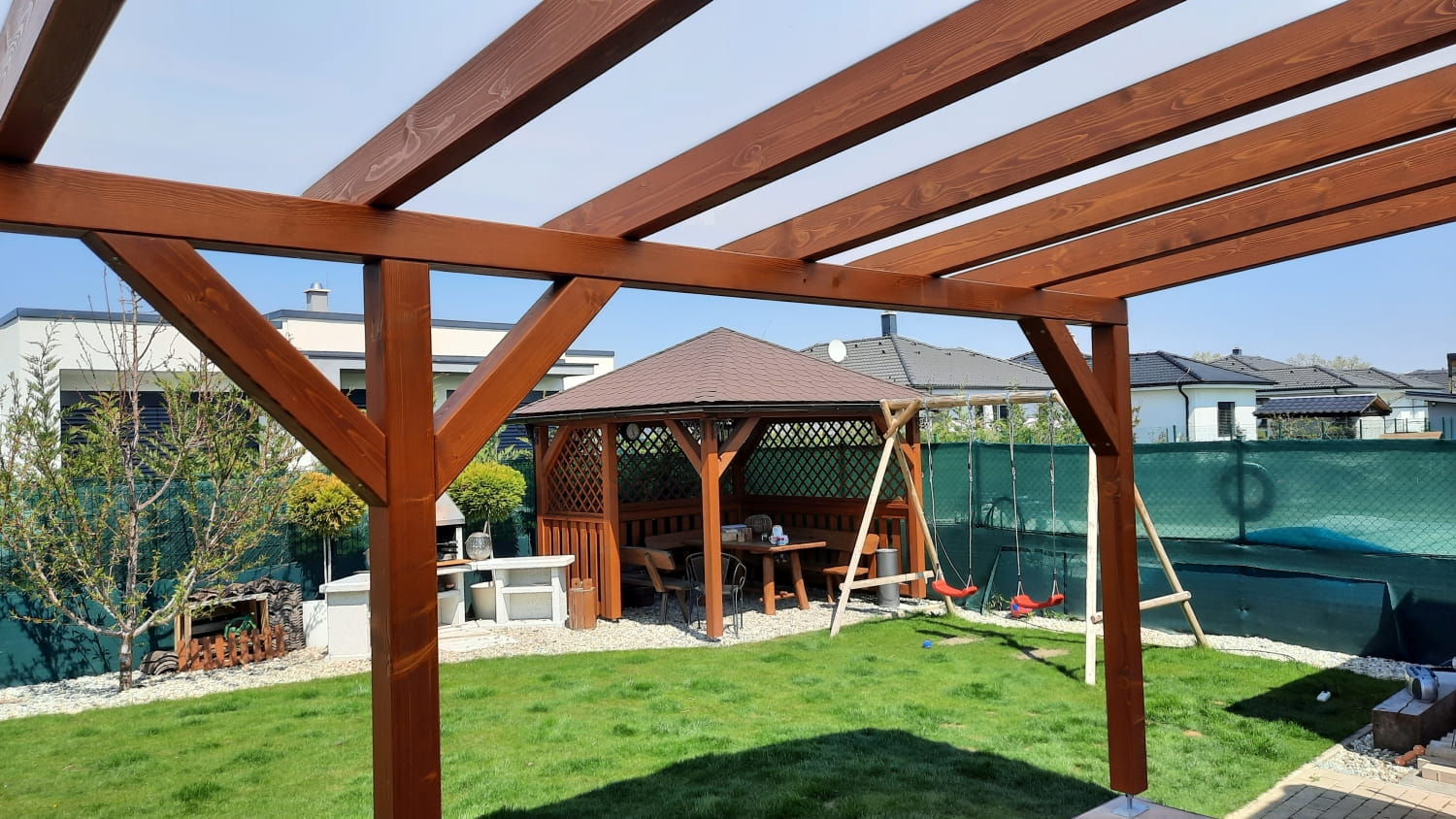 Výrobu exteriérových konštrukcií – drevené altánky, prístrešky na autá, záhradné domčeky a hliníkové pergoly.