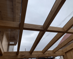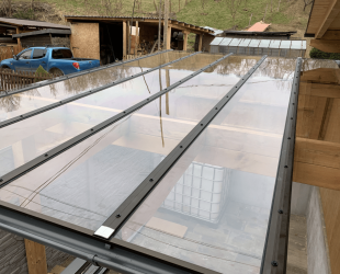 Prestrešenie plnými polykarbonátovými platňami. Použitý materiál plný LEXANTM EXELLTM D 8mm čírej farby.