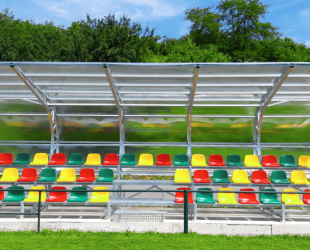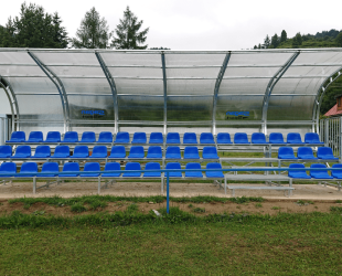 Krásny príklad ako sa dá Lexan ohýbať. Zastrešenie futbalových tribúne v obciach ( z ľava do prava ) Hencovce, Nemcovce, Veľký Lipník. Použitý dutinkový číry polykarbonát LEXANTM THERMOCLEARTM .