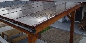 HS (heat shield) úprava znamená, že okrem bežnej UV ochrany je do vrchnej steny platne je spôsobom koextrúzie aplikovaný kovový prášok, ktorý na platni vytvára "tepelný štít", vďaka ktorému sa (IR) infračervená zložka slnečného žiarenia lepšie odráža od vonkajšieho povrchu platne a znižuje prestup slnečnej energie do interiéru. Táto úprava dodáva platniam vysokú estetickú a úžitkovú hodnotu s kovovým efektom. Platne v opálovom prevedení s úpravou HS vytvárajú výborný rozptyl svetla v priestore a ochraňujú interiér pred nadmerným prehrievaním (Reflexná opál 0305).